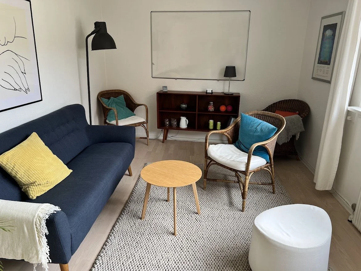 Vi kan enten mødes i mit terapilokale eller online på skærm - begge dele fungerer lige godt, afhængigt af dine behov. Vi kan også mødes i naturen og udnytte, at der er ekstra højt til loftet.
